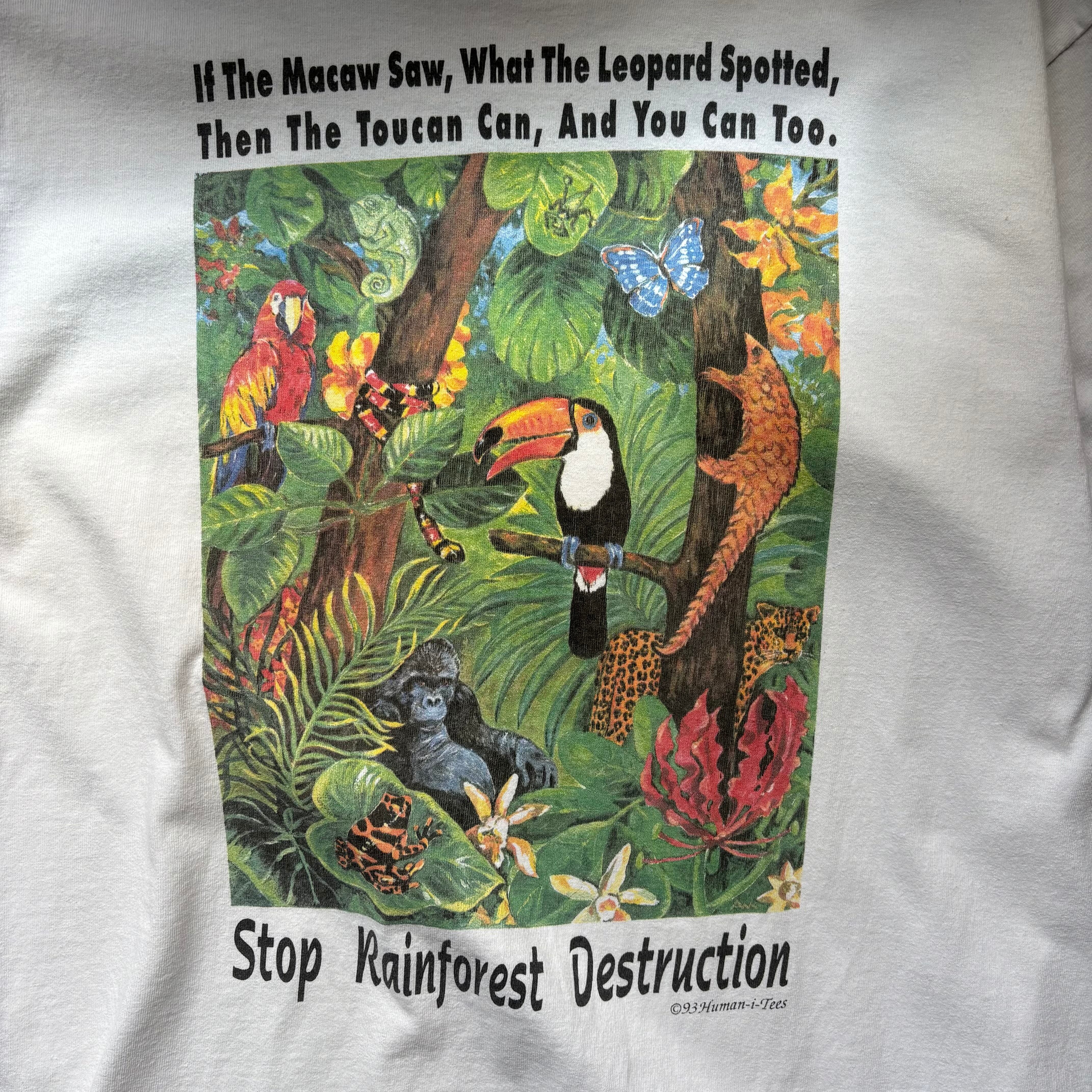 90年代のアニマル、動物愛護団体系のTシャツです。