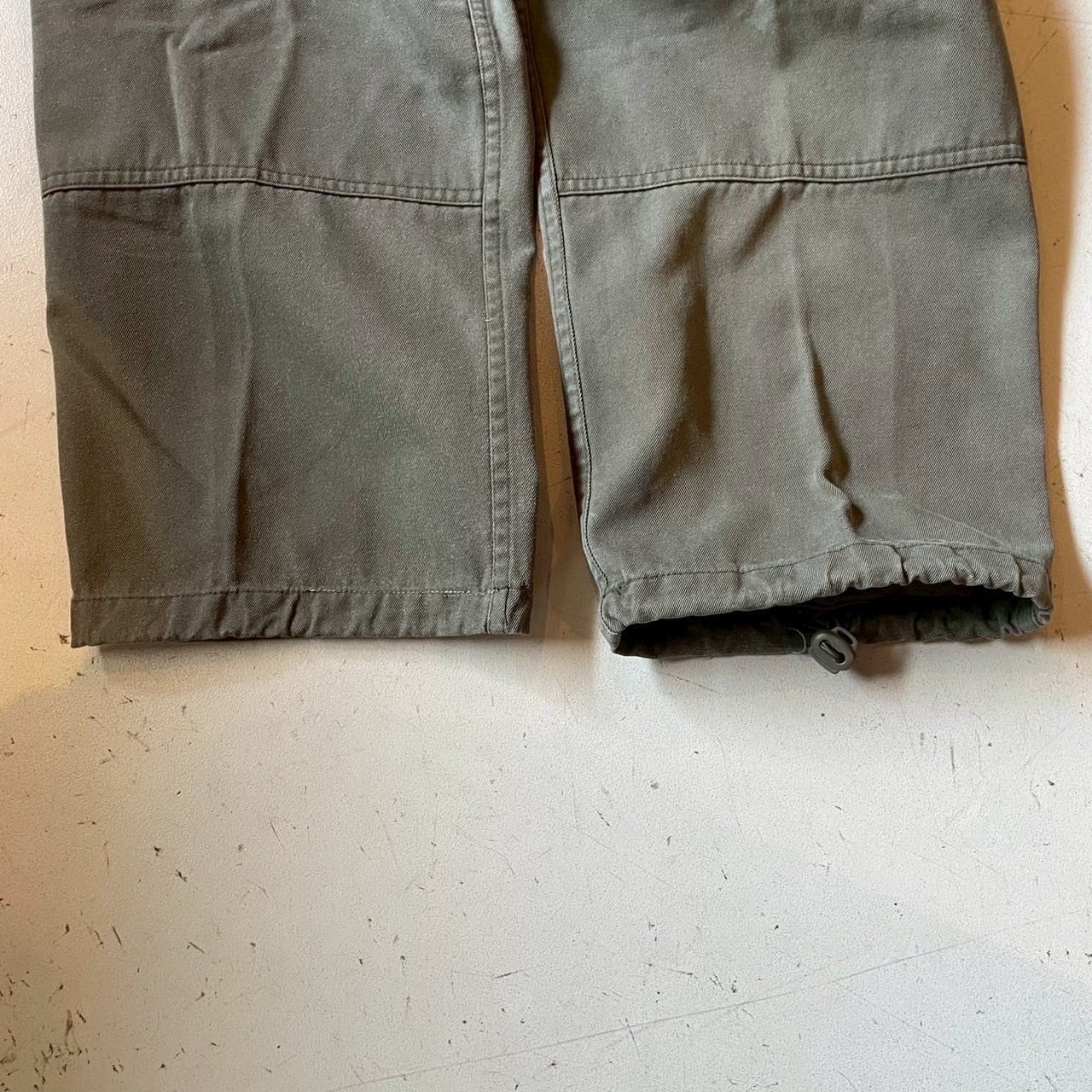 一見ただの軍のカーゴパンツにしか見えませんが、ファッション的に見ると、膝がダブルニー仕様になっており、裾も絞れるようになっております。