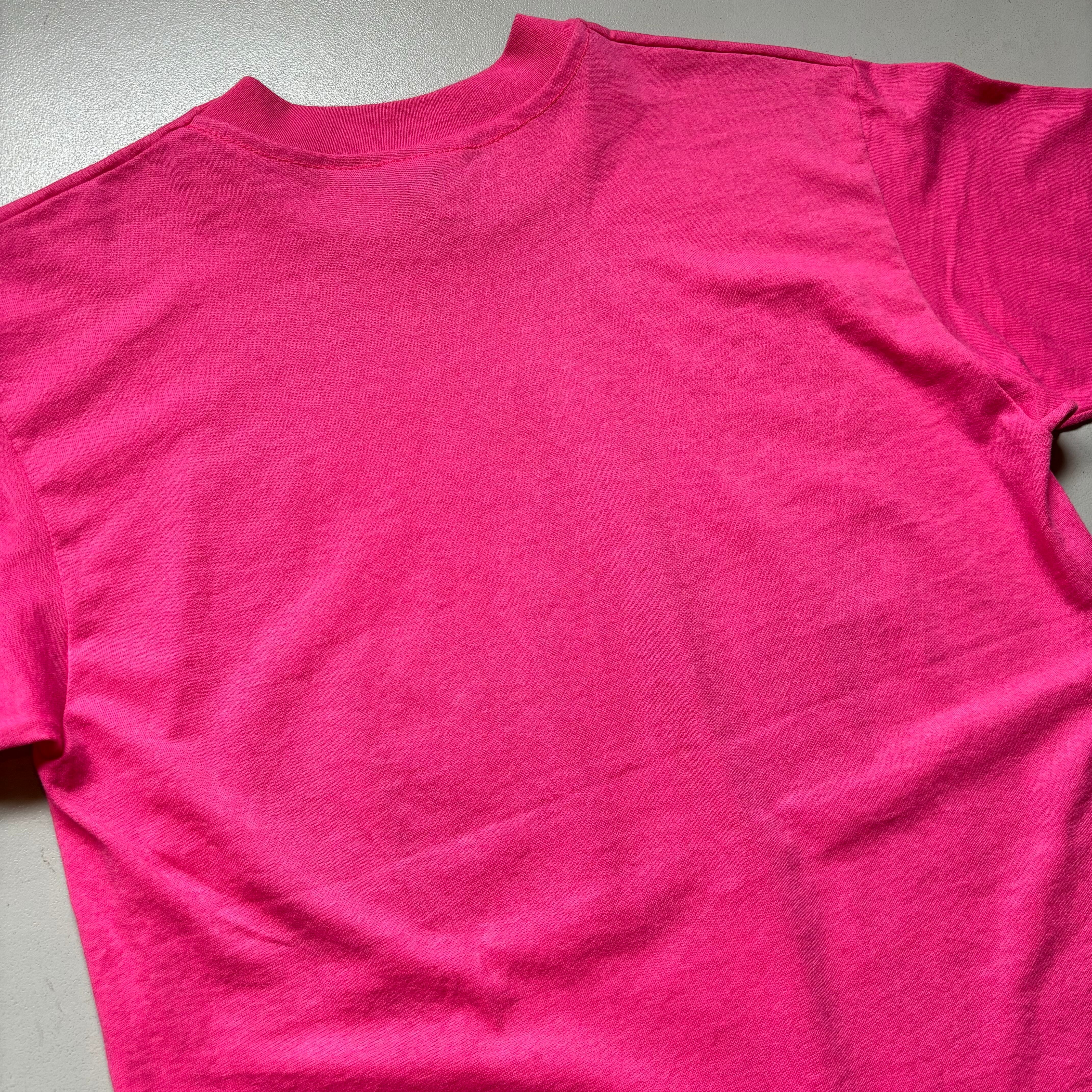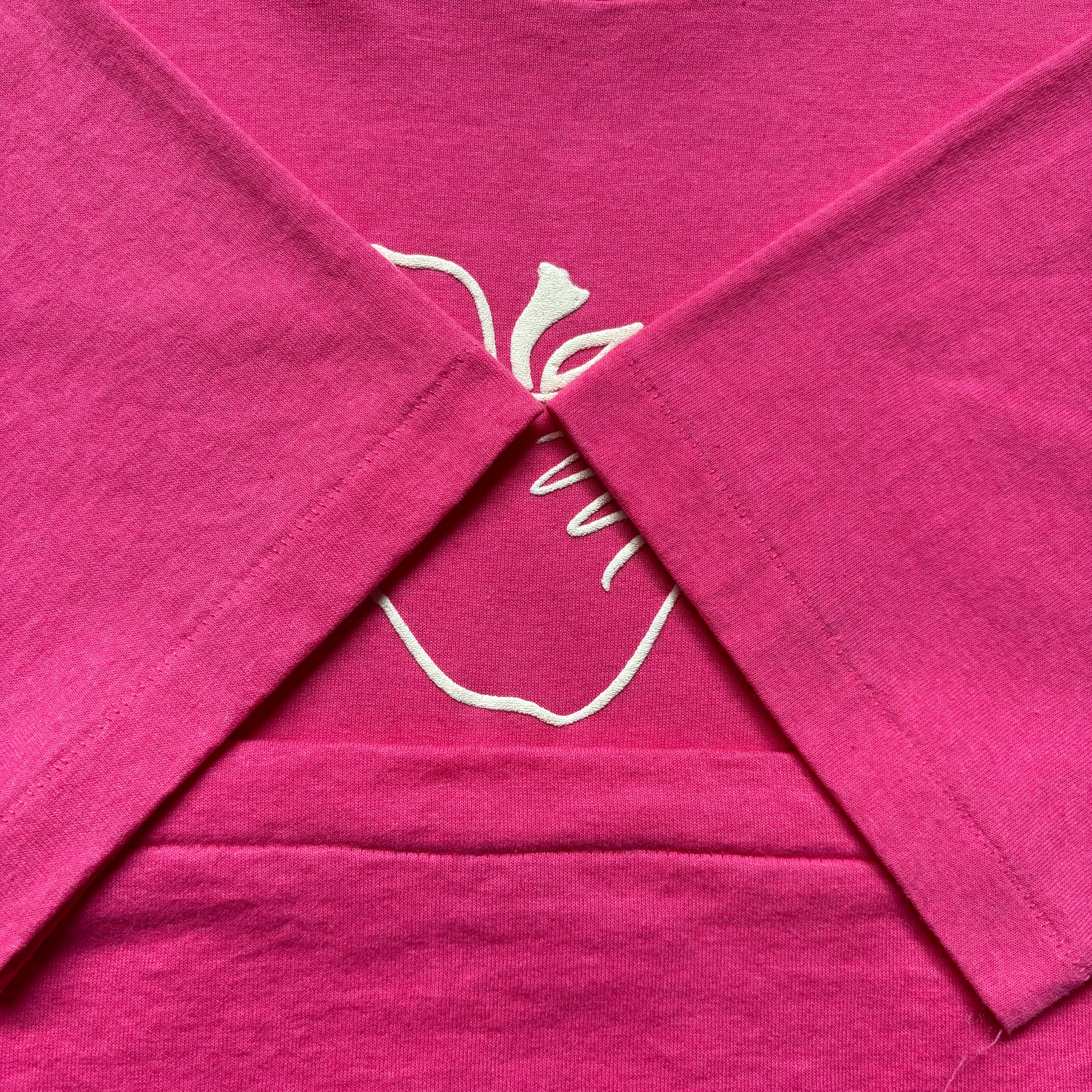 80s strawberry Flocked print T-shirt “size M” 80年代 イチゴ柄 フロッキープリント 発泡 Tシャツ ピンク