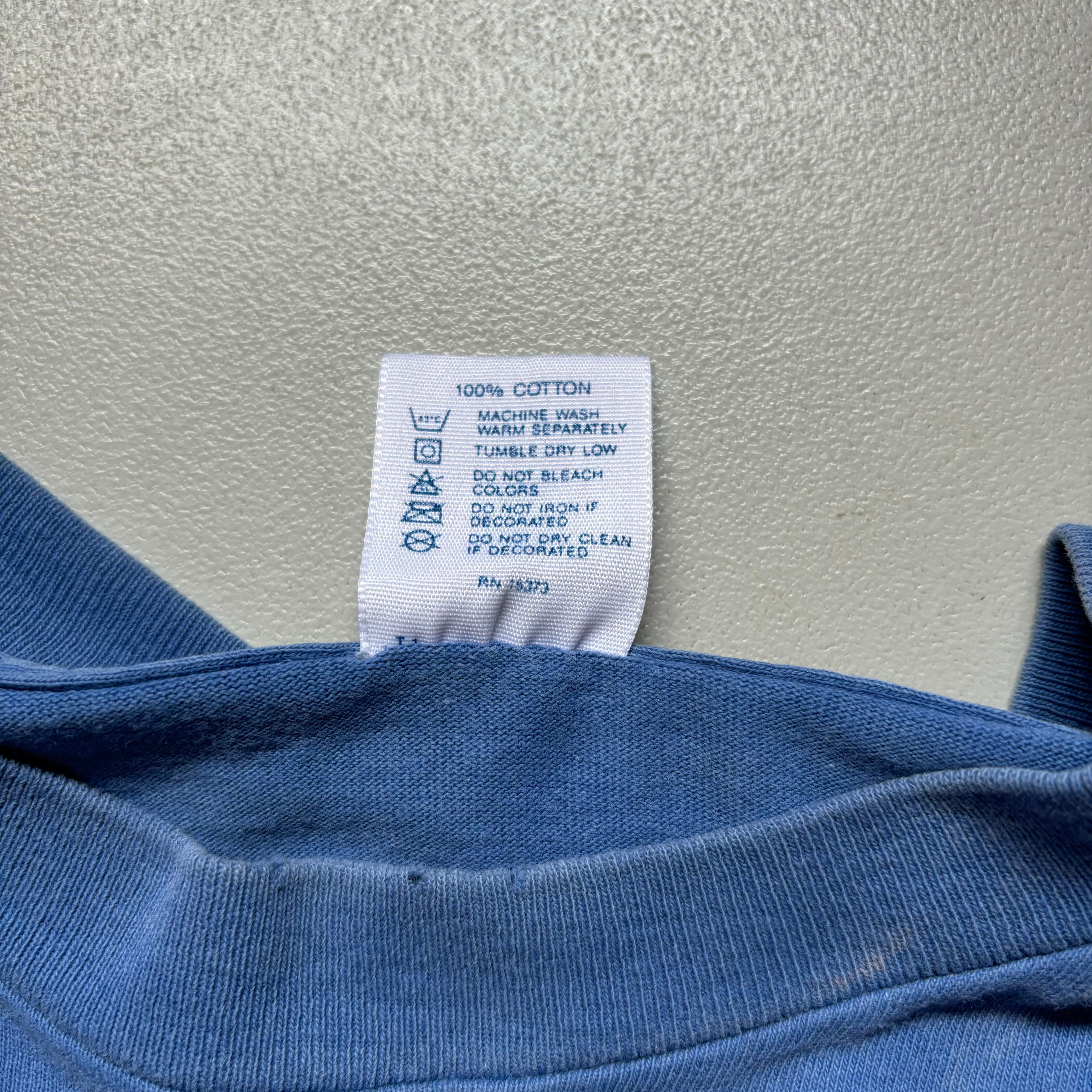 90s DELTA blank T-shirt “size L” “made in USA” 90年代 デルタ 無地Tee 半袖 Tシャツ 青 雰囲気系 ペンキ USA製 アメリカ製